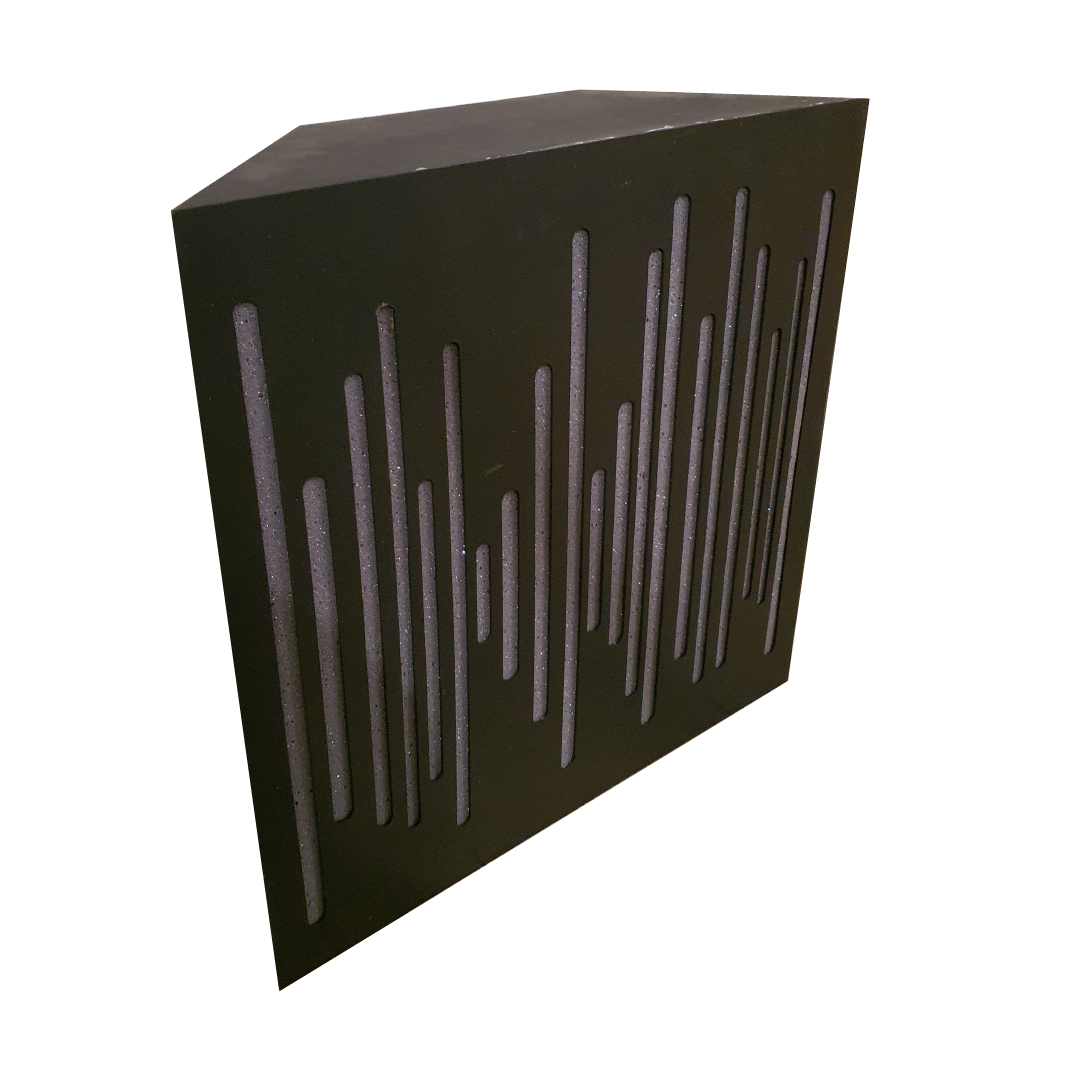 CORNER XTREM BASSTRAP. Apropiado para montaje en esquina, proporciona una absorción efectiva de baja frecuencia entre 60 y 125 Hz y ofrece la máxima efectividad entre 75 y 100 Hz. El panel frontal de madera tiene dos funciones, proporcionando suficiente absorción de frecuencias medias y altas para controlar los reflejos de las esquinas sin amortiguar el sonido, al mismo tiempo que actúa como un difusor.